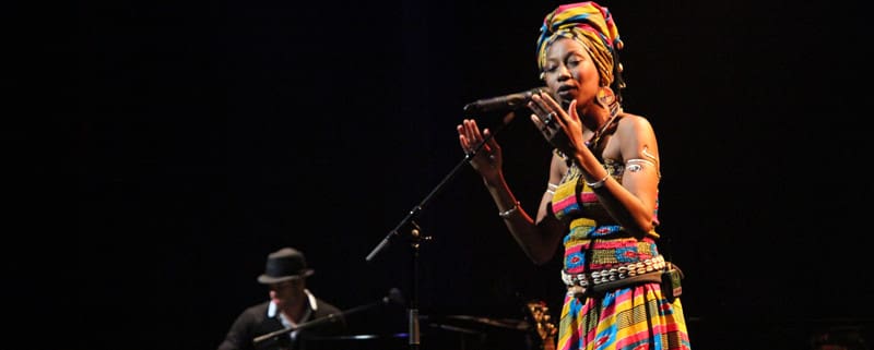 Fatoumata que lleva durante el show la voz cantante en todos los sentidos, a pesar de sus reconocidos problemas lingüísticos, aprovecha para poner delante del público las cuestiones que le preocupan. Habla sobre la paz, sobre la libertad, sobre el futuro o sobre la “dignidad de África” y como no de ese encuentro entre hermanos de una y otra orilla del Atlántico. Sin embargo, si algo llama la atención del discurso de Diawara es cómo consigue que “clandestin” suene a orgullo y dignidad. Todo un gusto, asistir a esta reconstrucción. Su ya mítica canción suena precedida de un discurso en el que la malí afirma que “el mundo es un gran libro” y que vivir en distintos países es “leer diferentes páginas”.
