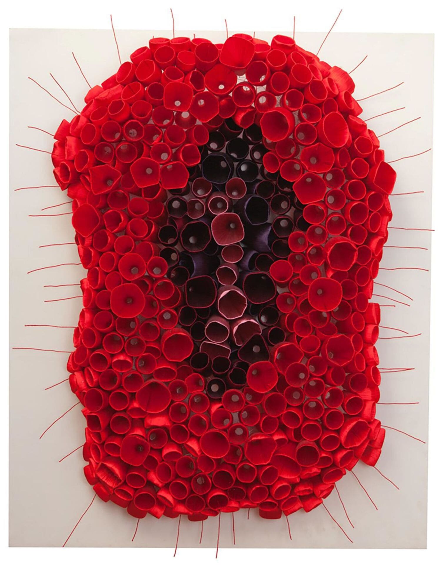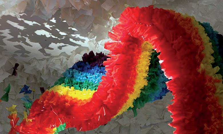 G.S.: Ahora mismo estoy fascinada con la universalidad de la basura. Trabajar con este material me hace tener en mente la idea de una mano grande que toma el cuerpo humano y lo sacude para limpiarlo de toda «la contaminación» recibida por la religión, la educación, la cultura, el género… hasta que sólo queda la parte interior y salvaje que contiene el cuerpo. Así es como yo concibo mi trabajo. Transformar un material como es la basura que, se supone, es la peor parte de humanidad, y darle una segunda vida como pieza artística, llena de emociones, es un verdadero desafío para mí. Mientras trabajo con la basura siempre pienso en su vida anterior y su energía. Mi trabajo es muy orgánico, crece con las células. Ocurre así tanto cuando trabajo con basura como cuando utilizo seda.