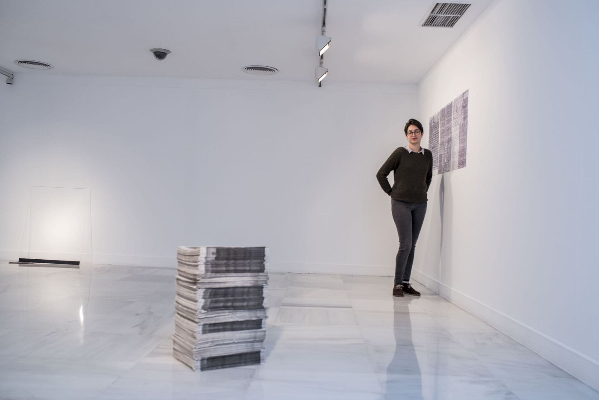Una pila de periódicos casi en medio de la sala dedicada a su exposición, con paredes blancas que obligan a centrar la mirada y atención en esta pieza, busca denunciar la ausencia de mensaje a través de la autocensura o la desaparición de una imagen o un texto. Para completar su crítica presenta una serie de falsos carteles y manuscritos con letra ininteligible y borrones, textos incompresibles que confunden al espectador y que le impiden llegar a la supuesta verdad, tal y como ocurre en nuestra cotidianidad debido a la sobreinformación a la que estamos expuestos.