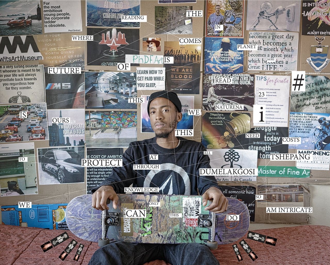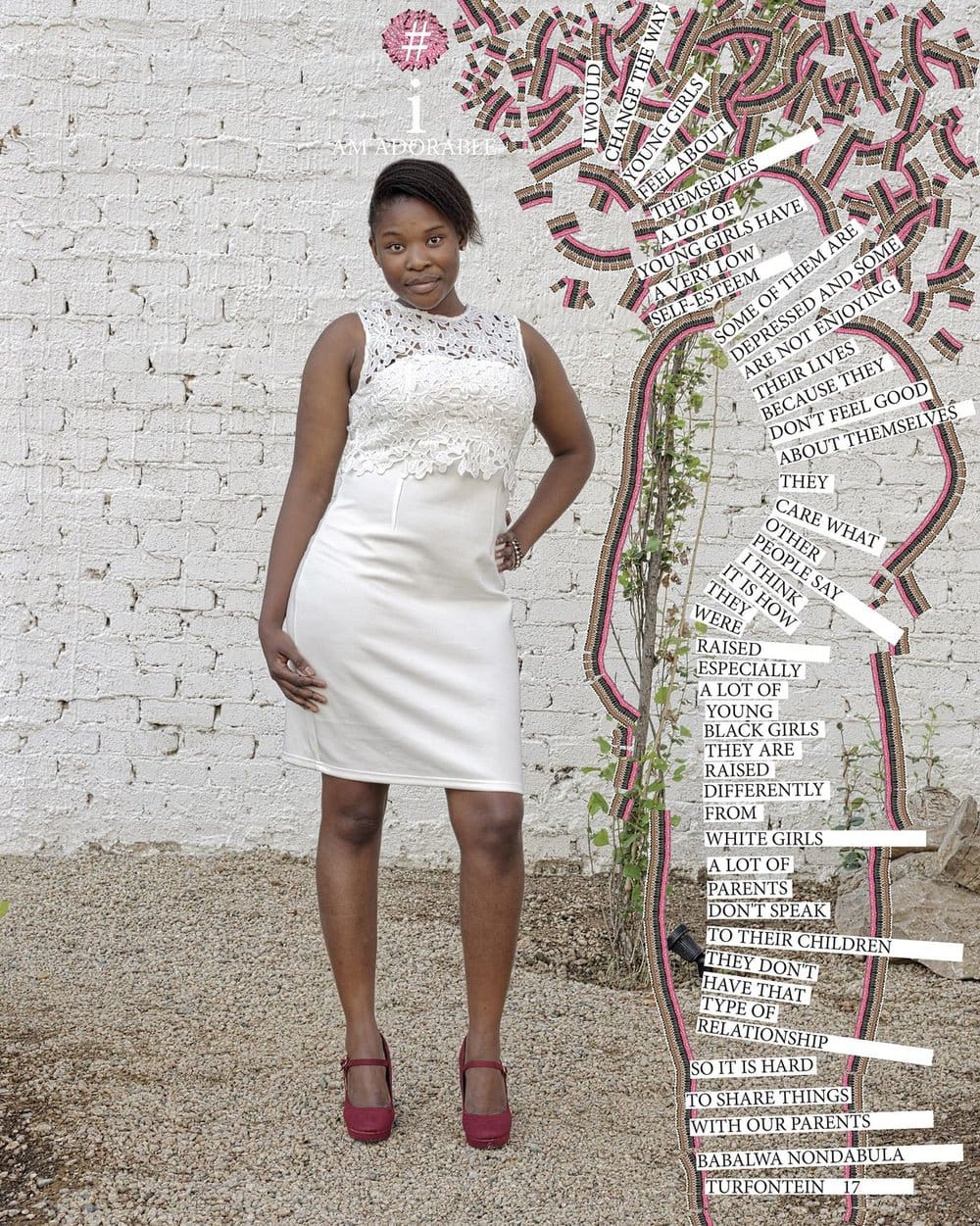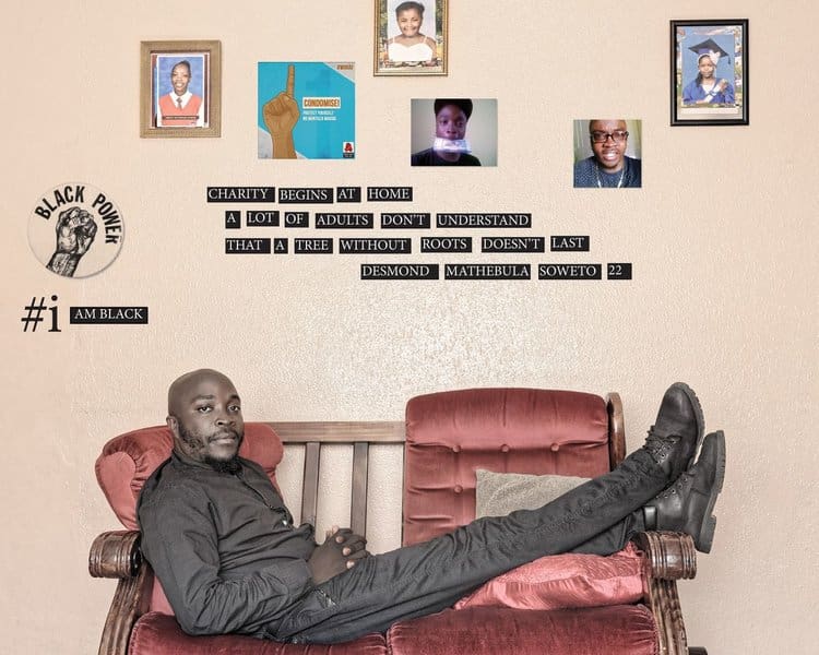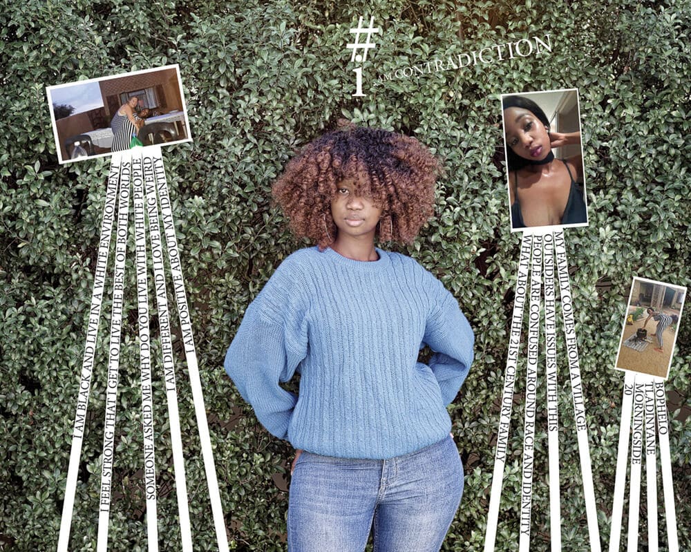 En la serie se retrata la generación de sudafricanos que ha nacido tras el final político del Apartheid de 1994. Los jóvenes que posan delante de su cámara son los protagonistas de los elocuente collages que ha presentado bajo el título de ‘#i’. Cada retrato es combinado en atractivas composiciones formando un collage, por un lado, con fotografías tomadas con los móviles de los protagonistas del proyecto, y por otro, con mensajes donde los jóvenes expresan sus distintas ideas. De este modo, cada protagonista adquiere voz transmitiendo a través de ‘#i’ sus inquietudes, sea la carencia de autoestima, el racismo o el desempleo.