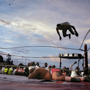 Colin Delfosse es un fotógrafo holandés que se adentró en uno de los aspectos culturales más representativos de la región de Katanga (Congo): la lucha congolesa. Saliendo de los estereotipos habituales de la fotografía en Africa e intentando ilustrar la riqueza cultural de la región, Delfosse pone en relieve que la lucha congolesa, así como la senegalesa, es una representación cultural que reúne muchos aspectos de la sociedad que van más allá de algunos aspectos a los que se la relacionan habitualmente, como la violencia. Os dejamos unas fotografías de la colección Congoleses wrestlers, Kinshasa (2010), y un link dónde podéis consultar varios de sus catálogos, a parte de la dirección de su blog personal.