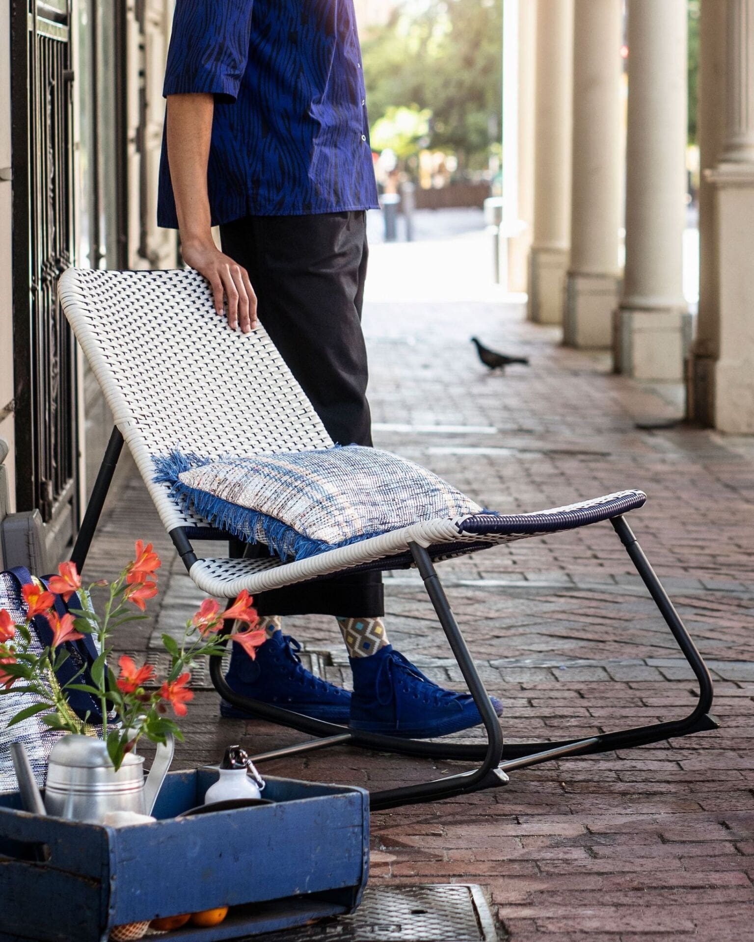 La musa del diseñador senegalés en este proyecto no puede ser más personal. Se trata del jardín de su madre en Dakar, un recuerdo del que ha nacido esta acogedora mecedora a juego con el reposapiés.