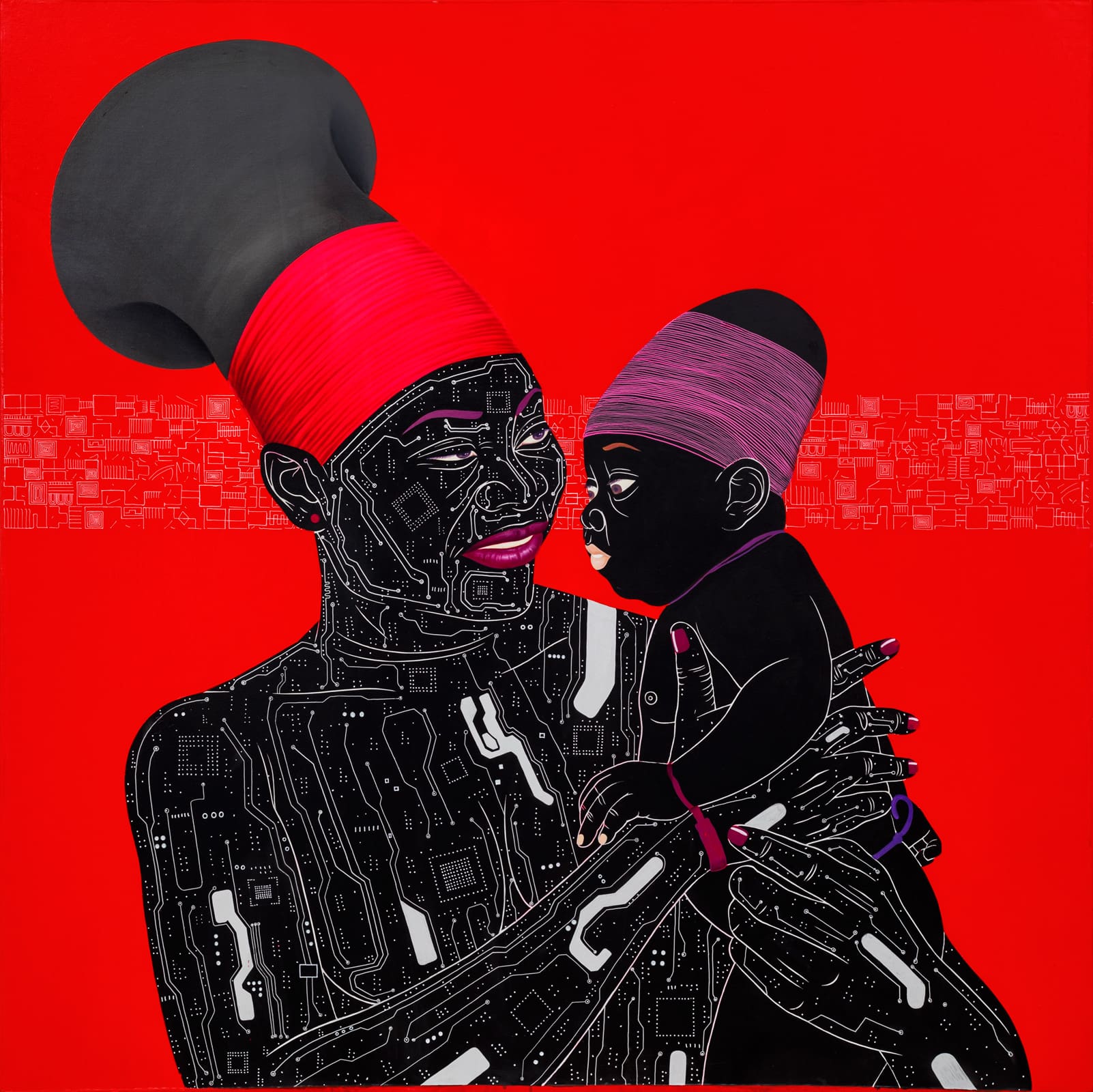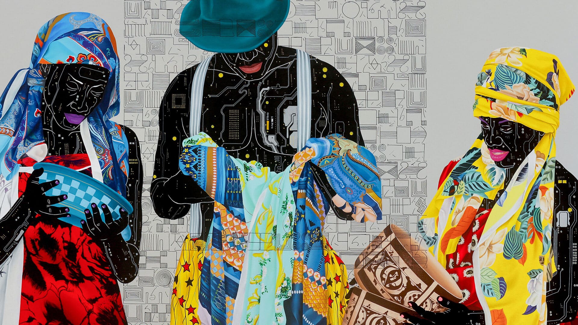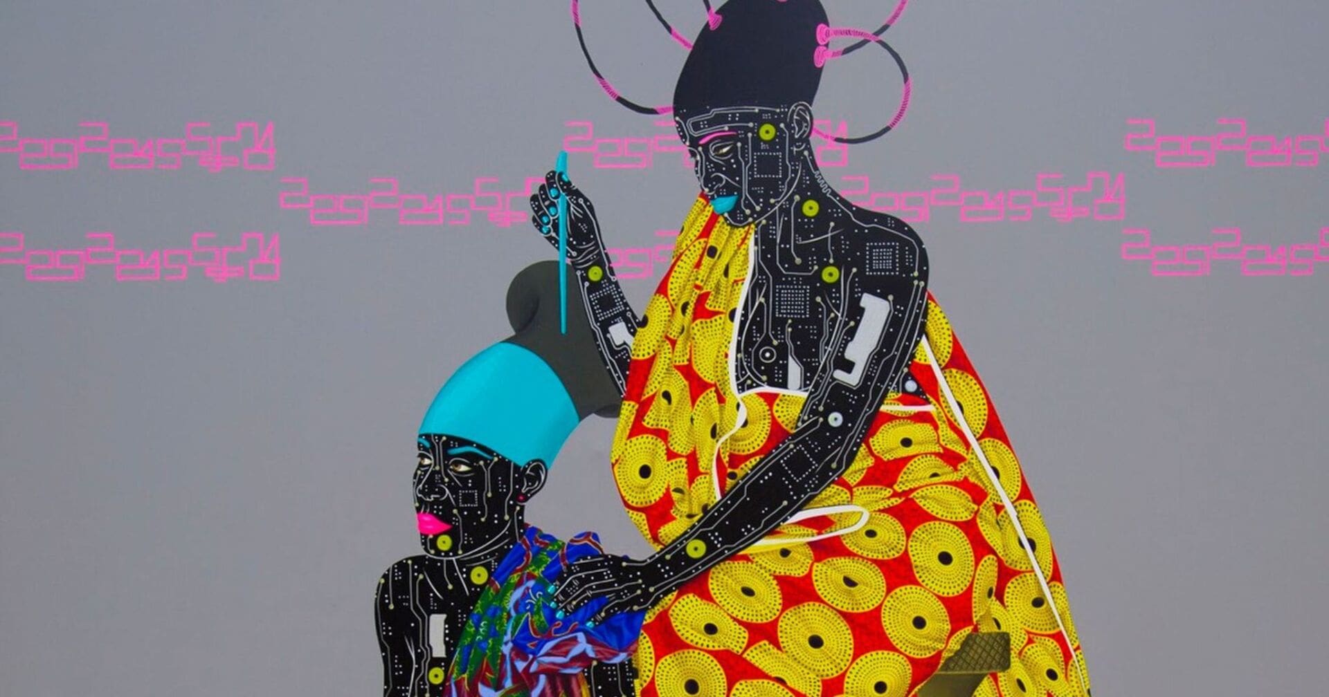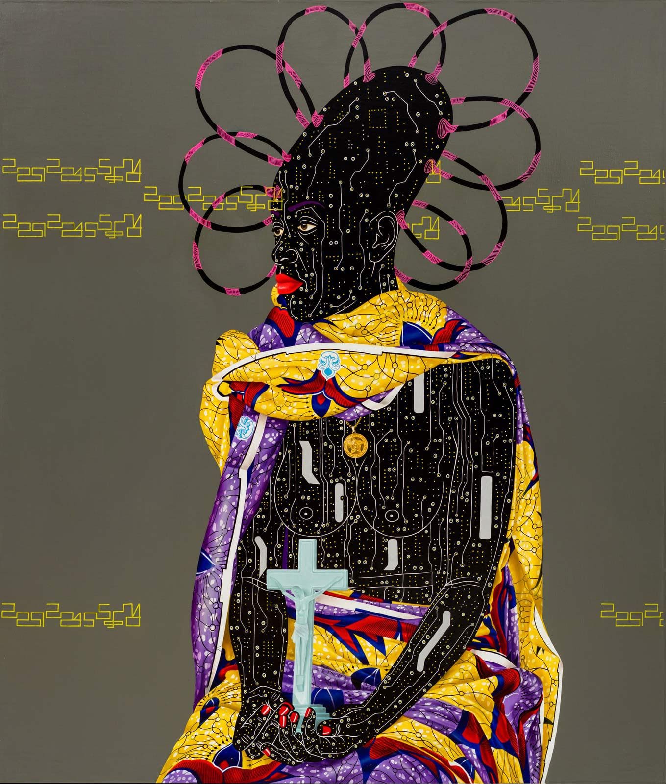En la línea pop que lleva caracterizando su trabajo desde sus inicios, las dos últimas colecciones del pintor de Kinshasa focalizan su fuerza en las personas que retrata, individuos de piel formada por placas de circuitos tecnológicos que evocan el papel de la República Democrática del Congo como la meca del coltán, un mineral imprescindible en los cada vez más utilizados dispositivos electrónicos. Los protagonistas de Kamuanga Ilunga cubren su electrónica dermis ataviados en su mayor parte por vistosas telas africanas frente a fondos de colores fríos, en unas pinturas que son un ejercicio de convivencia entre la modernidad y el pasado relegado que el artista percibe en la sociedad contemporánea de su país.