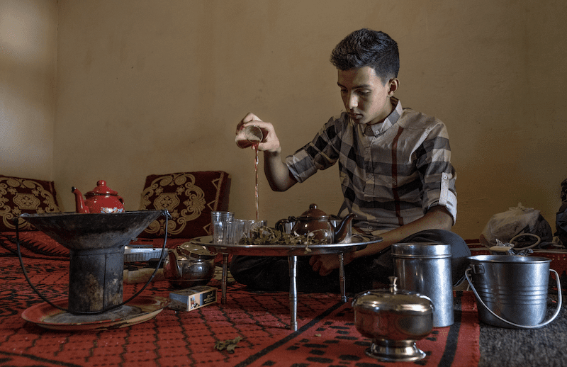 Por otro lado, los puestos de trabajo no abundan en los campos de refugiados. Así que para ganar el dinero necesario para vivir y para mantener el Centro de Creación Artística, Elarbi tiene una pequeña parada donde vende distintas obras menores; desde teteras y vasos decorados por él mismo con historias saharauis, hasta pinturas acerca de la vida de sus antepasados y utensilios típicos de su pueblo.