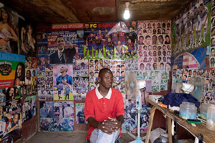 Su investigación fotográfica es una clara muestra de que las barberías, efectivamente, son importantes puntos de encuentro y convivencia en gran parte de África, de la misma manera que lo son el mercado, los puestos de comida o la calle misma, a menudo utilizados como un espacio realmente público. Esiebo nos presenta estos salones como un espacio imprescindible con capacidad para dar “forma” a la identidad —incluso al mismo nivel que la escuela o la iglesia— a la vez que es un lugar de desconexión. Un lugar donde poder dejar los problemas en la puerta y relajarse en una conversación trivial sobre cualquier tema de la actualidad nacional o internacional. Sus fotografías nos muestran sus interiores, sus exteriores y los “antes y después” de los cortes de pelo y que el patrón se repite en un gran número de las barberías de la región. ¿Hay entonces persistencias estéticas e icónicas en toda la región occidental de África? Esiebo, en una entrevista para The Guardian afirma: