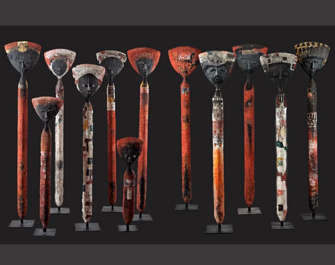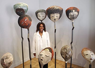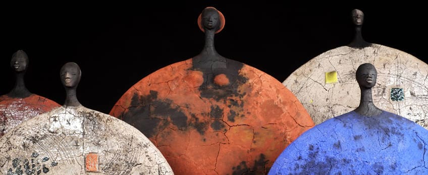 Otro elemento muy africano en la obra de Etiyé es casi una secreta pasión que difícilmente se descubre a primera vista. En general, accedemos a las esculturas individualmente. Sin embargo, la artista confiesa que le gusta colocarlas juntas como formando una comunidad: “Se trata de estar ahí, de formar parte de, de pertenecer a… avanzar… Una presencia primordial, una huella de la cultura humana en la tierra. Cada personaje es un rasgo más que un retrato. Es por eso por lo que me gusta ver mis estatuas juntas, formando una comunidad, un grupo de tótems, como un bosque…”.