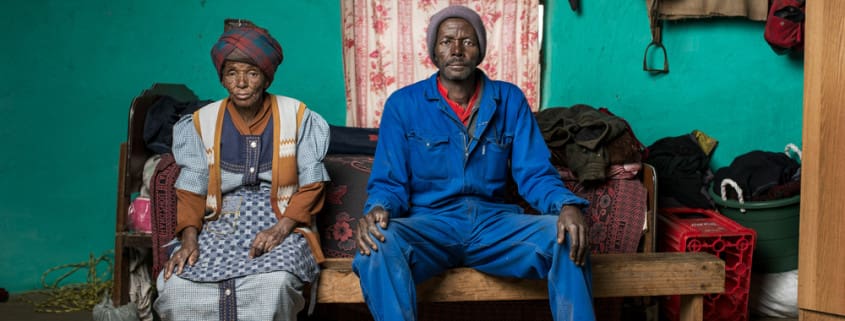 Durante veinte días (septiembre-octubre 2015) , Thom Pierce estuvo viajando por Eastern Cape, Lesotho y Johannesburgo para fotografiar a 56 mineros enfermos de tuberculosis pulmonar y a las viudas de los que murieron a causa de esta enfermedad. Su causa es una inadecuada protección ante el polvo de sílice en las minas de oro donde éstos trabajaban.