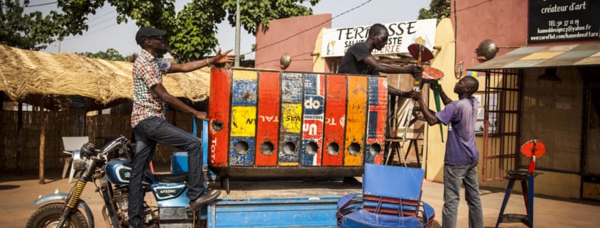 Burkina Faso está en los primeros puestos de la lista de los países más pobres del mundo y, por ende, también en la de los más dependientes en importaciones, que no atienden a criterios de sostenibilidad en su envasado precisamente y dejan un excedente de plástico y envases de metal en el país. Un escenario en el que el artista Hamed Ouattara ve la ocasión de generar desarrollo a través de la creación de muebles diseñados con materiales reciclados. Su trabajo le ha llevado a ser reconocido, entre otros galardones, con el Premio de Diseño Africano en su primera edición y a ser nombrado Personalidad Cultural del Año 2017 de Burkina Faso en la categoría de arte.