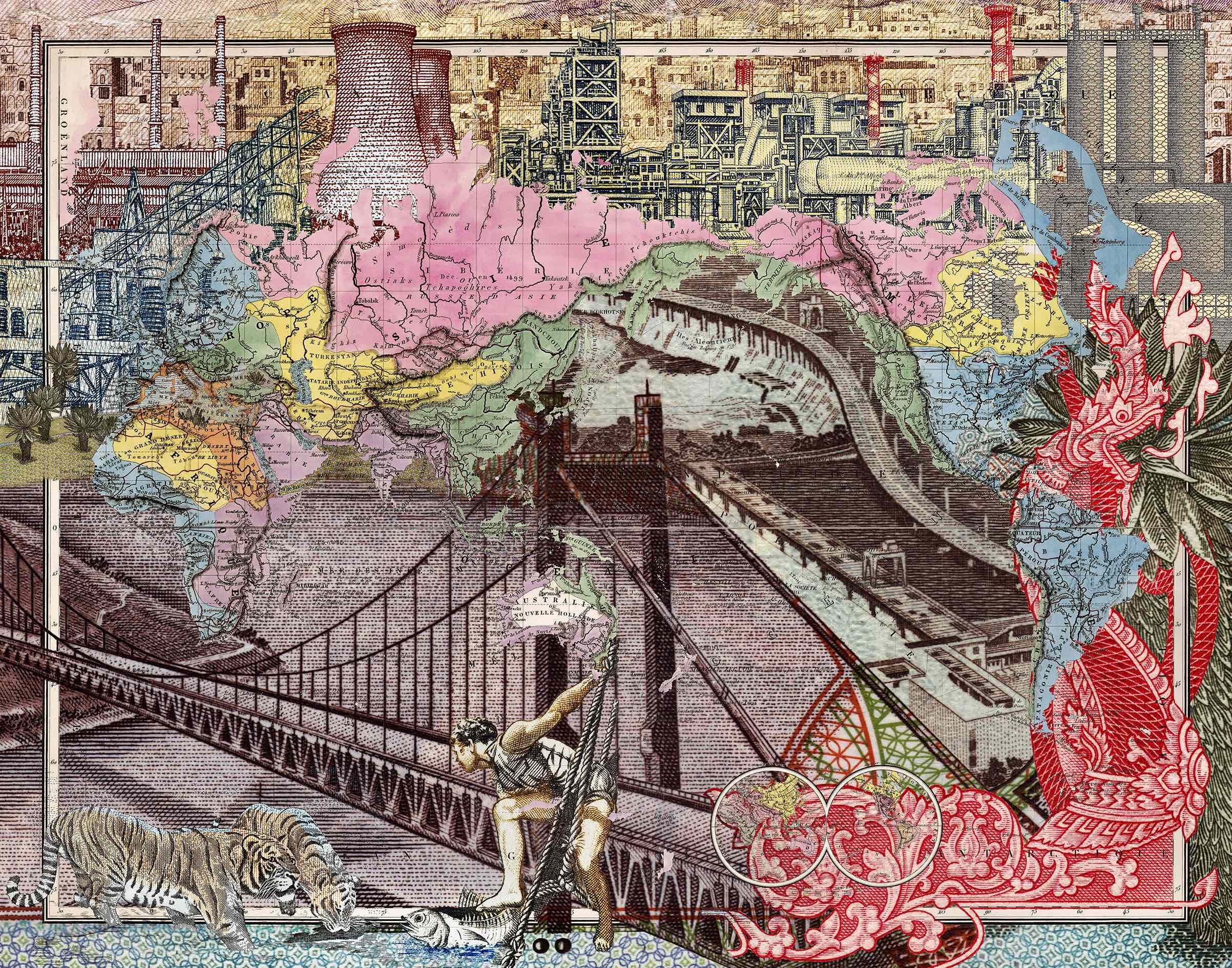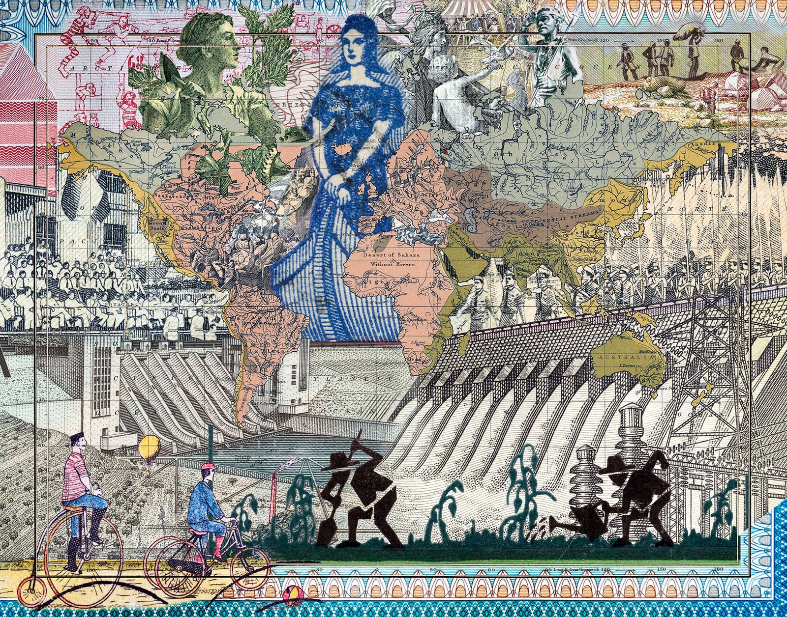 De formación arquitecta, Andrialavidrazana está familiarizada con los planos, pero son los trazados cartográficos los que han catapultado su carrera. Sus mapas del siglo XIX reconstruidos digitalmente dan como resultado una serie de meticulosas composiciones que llevan por título la fecha original del atlas que ha utilizado como referencia. Desbordantes de elegancia y color, pese a la cantidad de elementos que componen cada pieza, rezuman una armonía ácida en tanto en cuanto dejan entrever la idea de que la cartografía tiene a menudo más que ver son una interpretación intencionada de la realidad que con la representación geográfica real.