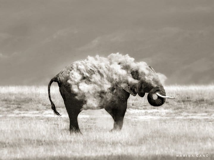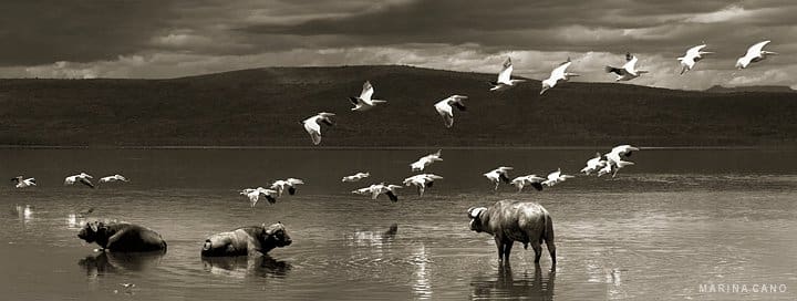 De esta obra nos llama la atención su estética mirada desde respeto hacia la fauna y la naturaleza, con la que capta toda su esencia y recoge esos fugaces momentos bellos y salvajes del entorno natural. Carbárceno, en Cantabria, es uno de sus lugares preferidos, aunque en cuanto tiene la oportunidad Marina se escapa a algunos de los hipnóticos entornos que África concede a aquellos amantes de la naturaleza y la fauna.
