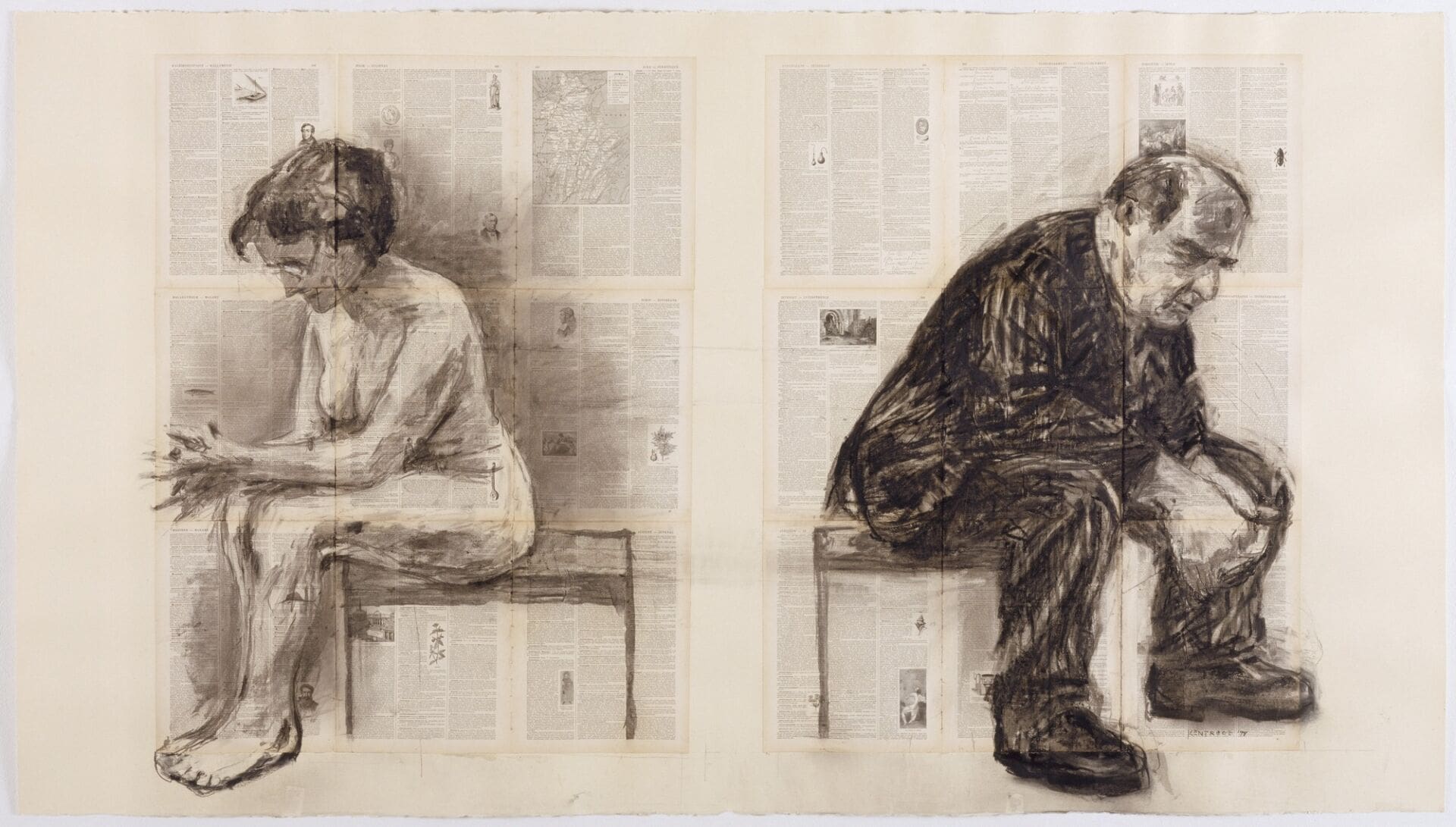 - ‘Seated Couple (Back to Back)’ (1998), William Kentridge.-