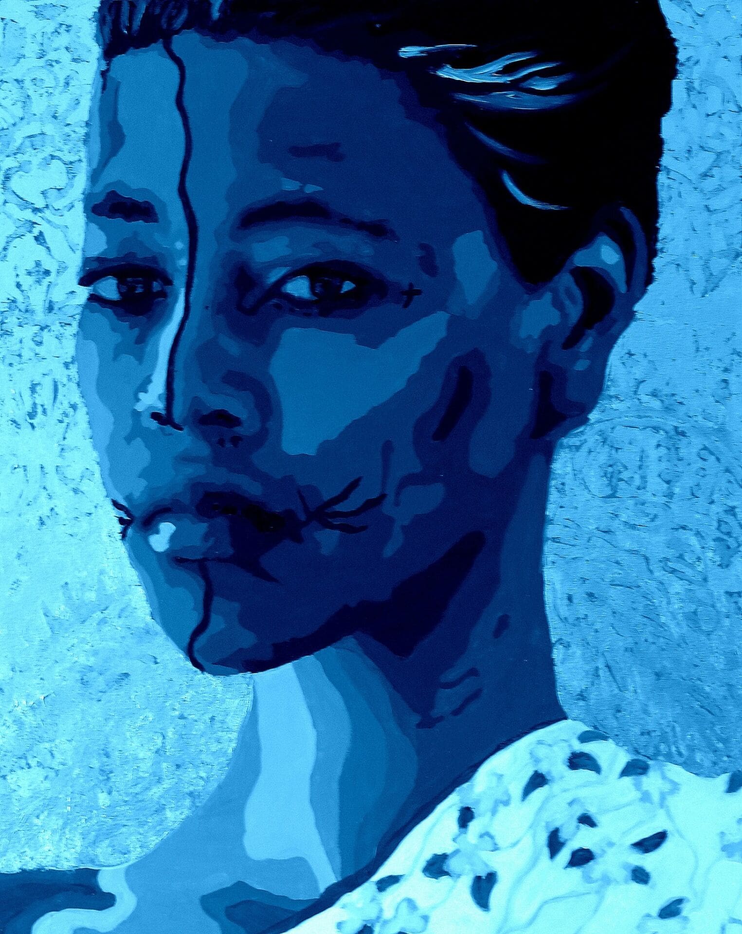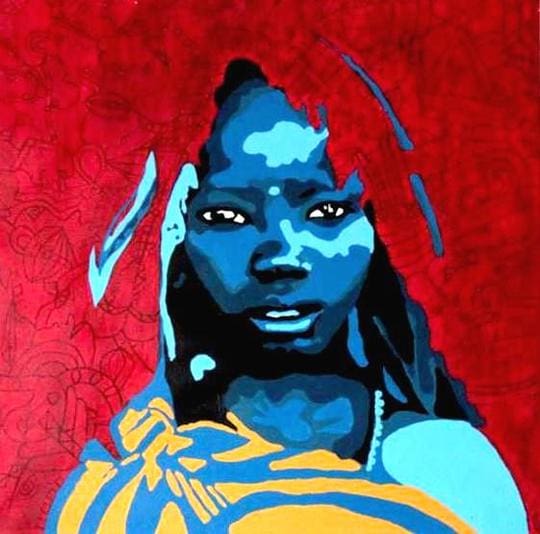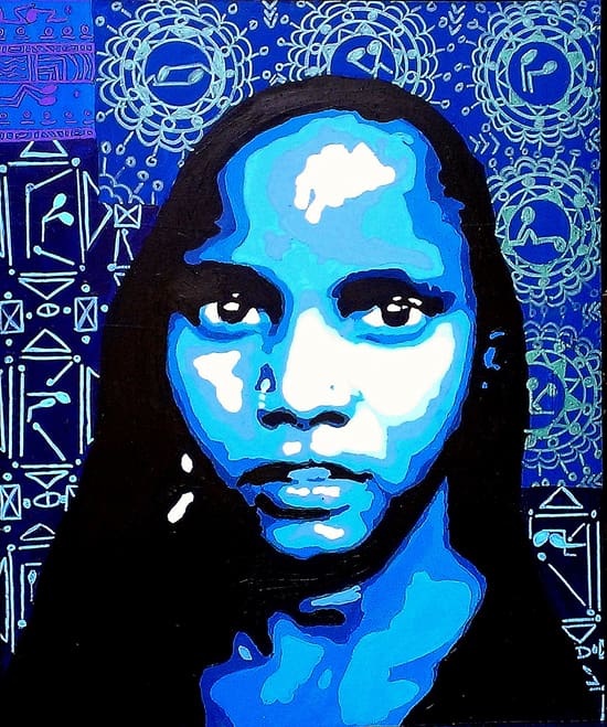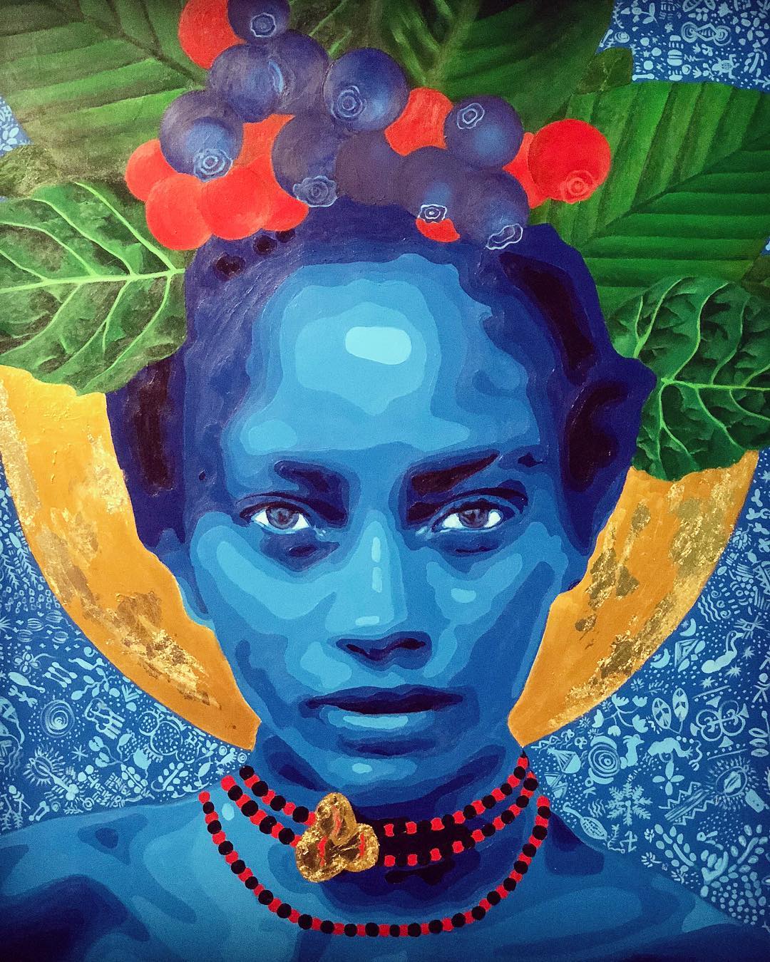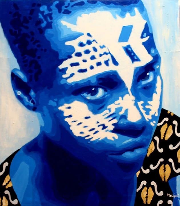 Mirar un cuadro de Moufouli Bello es caer en un duermevela. Serán los azules intensos que predominan en sus composiciones o las miradas hipnóticas que capta, pero lo cierto es que, pese a la paleta de colores fuertes y los retratos desafiantes, su obra relaja. «La pintura es mi yoga», dice en esta entrevista a Afrique Design Daily, y se nota. Las narraciones visuales de la artista beninesa fusionan la pintura, la fotografía y el arte digital para sumergir al espectador en una espiral de reinterpretaciones de la identidad y la feminidad.