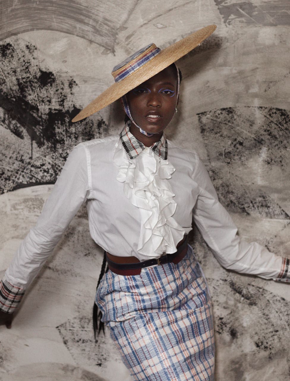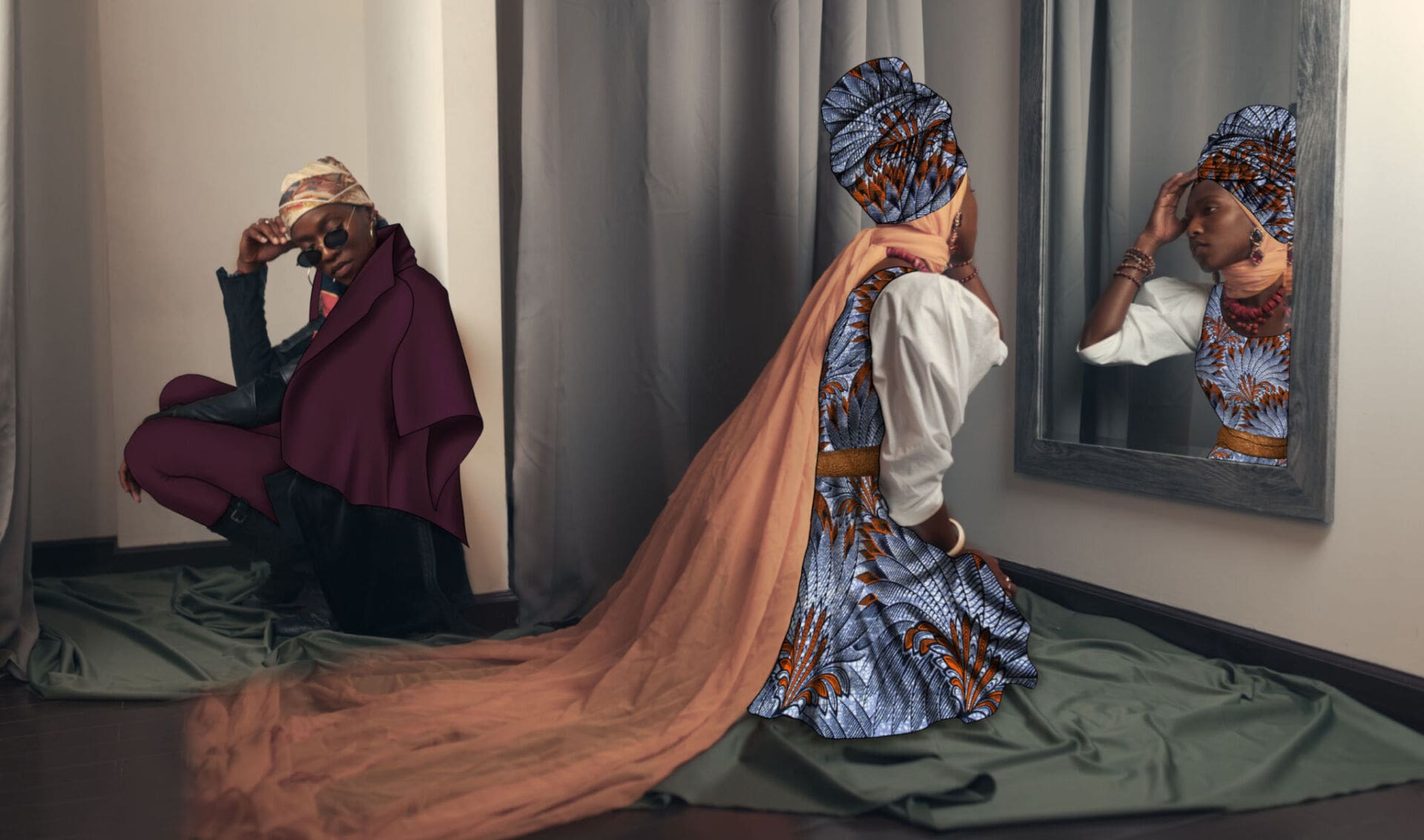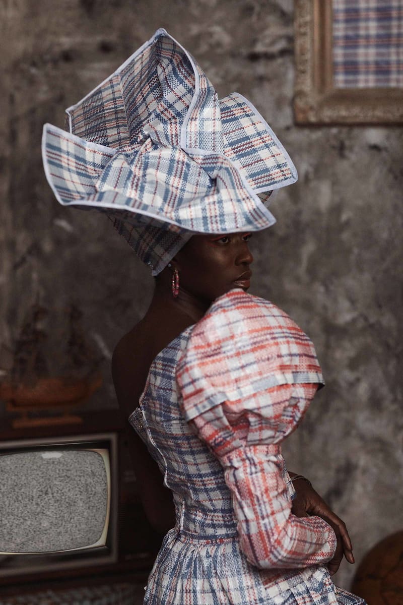 Esta vez junto a la diseñadora Chioma Obiegbu y la estilista Wuraola Oladapo con quienes crea nuevas narrativas asociadas a la migración a través de esta bolsa, que en “Anyi N’Aga” lo abarca todo. Para empezar, la moda: Obioma retrata a mujeres vestidas con diseños que describe como una fusión de lo occidental y lo africano. En ellos se puede ver desde un gele, los icónicos tocados yorubas, hasta pamelas; desde faldas de tubo a pareos. Pero es que, en estas fotografías, el tejido a cuadros trasciende e incluye el espacio, con lámparas o cuadros que iluminan y muestran que las personas que migran no solo portan las pertenencias que llevan consigo, sino que también aportan los conocimientos y cultura que llevan con ellas mismas.