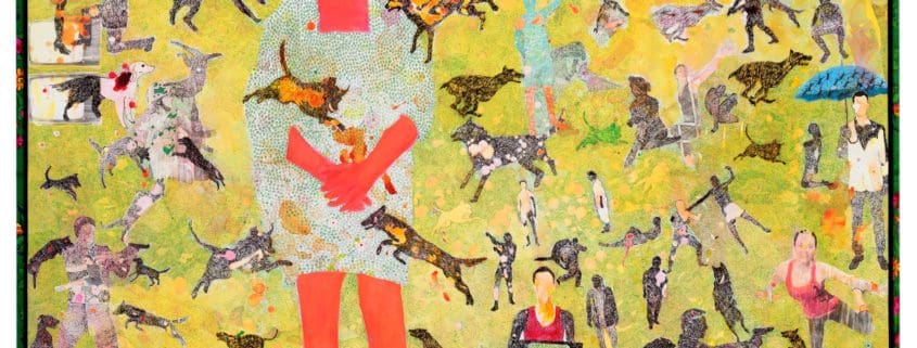 “Yo nací en una comunidad rural donde el mito y la narración oral florecen. Estas narrativas han orientado mis creaciones artísticas tanto como la percepción que tengo de la realidad desde que era un niño”, dice el artista tunecino. Procedente de Mazouna, en la región de Sidi Bouzid, su niñez la asocia a los cuentos y los poemas, una herencia literaria que construyó sus primeros conocimientos y certezas a través de lo que imaginaba al escuchar. Más tarde, ya en la facultad de Bellas Artes, El Kamel aprendió a materializar ese imaginario narrativo en una práctica pictórica que acabó por convertirse en su inspiración y su propio estilo. Para él la línea que separa lo real de lo imaginado es un camino más presente en la vida cotidiana de lo que pensamos.