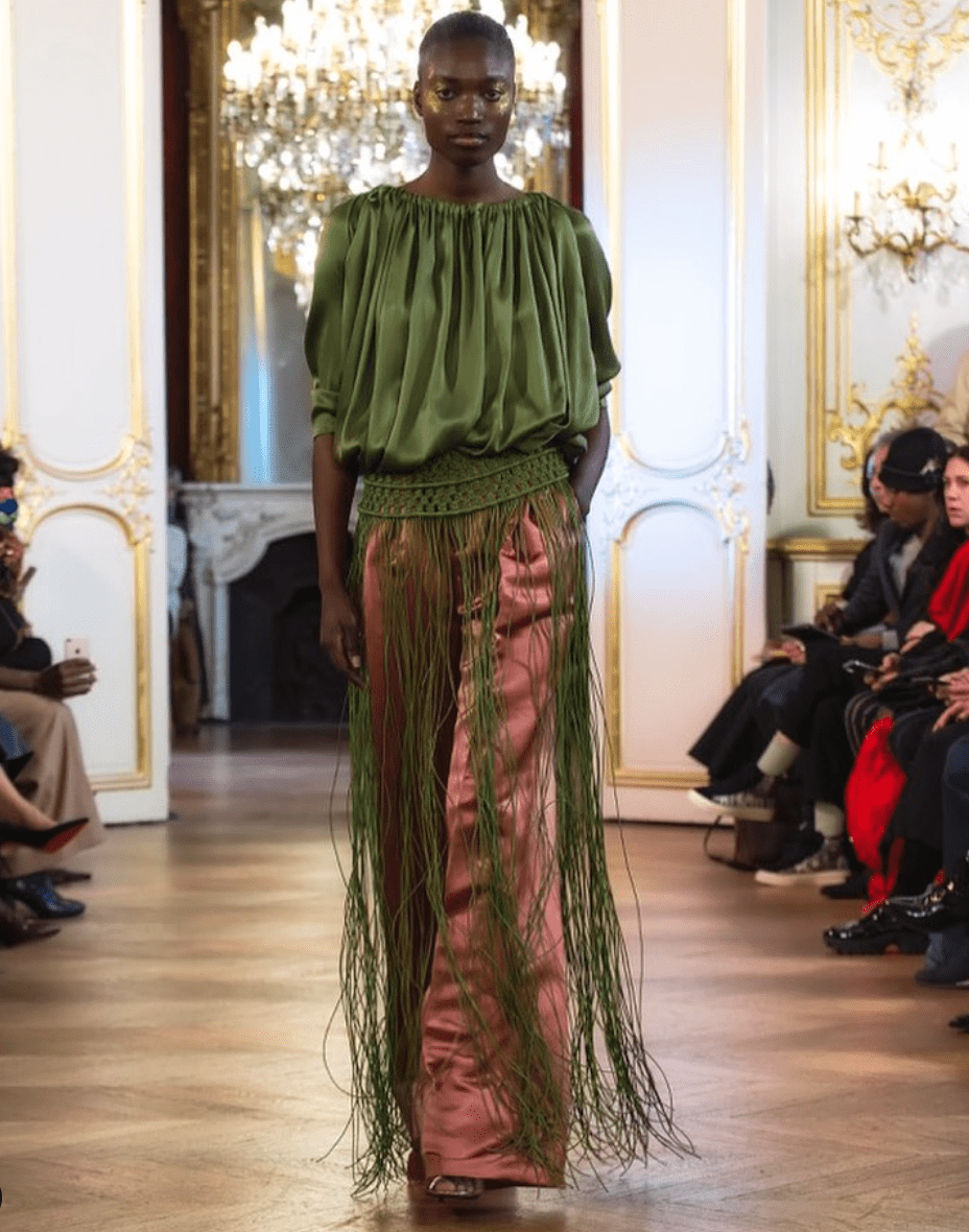 El diseñador camerunés Imane Ayissi enumera hasta cinco tejidos africanos al hablar de sus últimas colecciones: “Telas tejidas a mano como Kente de Ghana, Kita de Costa de Marfil, tejidos con patrones de Manjak de Senegal, Faso Dan Fani de Burkina Faso; y tela de corteza de Camerún, llamada Obom. Es una técnica muy antigua para crear textiles directamente de la corteza de los árboles. Un poco difícil de usar hoy en día, porque es bastante rígido y rústico, pero hice hermosos bordados con este material en mi colección primavera-verano 2021”.