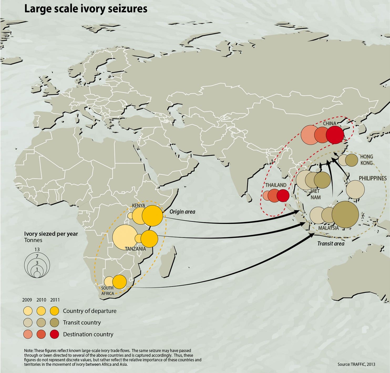 Tanto sus colmillos como los cuernos de los rinocerontes (de los que solo quedan unos 5.000 en el continente), se han convertido en material de lujo y objeto de tráfico por mafias organizadas que los transportan hacia países asiáticos o Estados Unidos. Según Europol, cada quilo de marfil puede valer hasta 46.000 euros. Y a pesar de que China, Estados Unidos o países africanos como Kenia ya ha endurecido las penas hacia su comercio, y otros como Francia han prohibido su importación, la biodiversidad del continente está viéndose severamente amenazada.