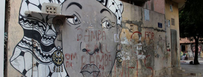 3. La Medina de Dakar. El corazón de la ciudad fue el barrio de los africanos durante la época colonial. Allí nacieron importantes pensadores, artistas e intelectuales que lideraron la independencia de Senegal en 1960. Es un barrio popular muy genuino con una extraordinaria vida en sus calles. En la zona costera encontramos el pequeño vecindario de Damels, frente al mercado artesanal y pesquero de Soumbedioum, donde se inicío hace 5 años el proyecto AFRICA ♥ COLOR. Un evento vivo, dinámico, en constante expansión que reúne artistas urbanos de todo el mundo, muchos de ellos españoles como Sabotaje al Montaje, Iker Muro, H101, 3TTMan, SCIF, Txemy, An Wei , etc… El objetivo es que Damels se convierta, poco a poco, en un Museo de Street Art, conservando y mejorando su entorno y generando empleo.