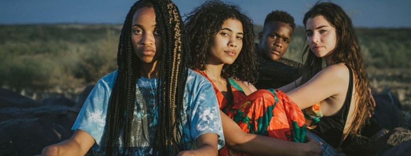 El de High Fantasy (2017) es un telón de fondo complejo aunque la historia es llevada a la pantalla con mucha innovación y naturalidad en la piel de cuatro jóvenes. Tres chicas (blanca, mestiza y negra) y un chico negro (¿qué actúa como protector de ellas?) deciden pasar unos días en una granja abandonada propiedad de la familia de Lexi (Francesca Varrie Michel), la chica blanca. Un lugar inhóspito, deshabitado y que Xoli, el chico (Quandiswa James) critica al inicio del film: “¡una sola persona es el propietario de toda esta tierra!”. La herencia colonial se vislumbra en algunos de los mensajes, aunque no sea el centro de la cuestión. Se les ve bailar, fumar y reír hasta que el giro fílmico atraviesa al espectador: después de una noche, sus cuerpos se intercambian… Y la interpelación es directa. ¿Qué se siente al ver a otra persona interactuando con algo tan personal y esencial para su identidad como la propia piel?