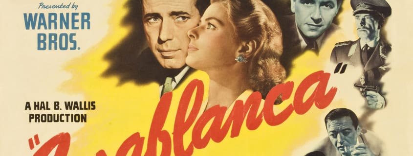 El largometraje, que ganó tres de las ocho nominaciones a los premios Oscar, entre ellos a mejor película, está ambientada en la Segunda Guerra Mundial y relata la situación de los refugiados europeos que huían del III Reich Alemán y acababan en la ciudad marroquí con la esperanza de lograr los visados que les llevarían a América, a través de Lisboa. Pero Casablanca se convirtió en un gigantesco embudo en el que se entraba, pero no se salía.