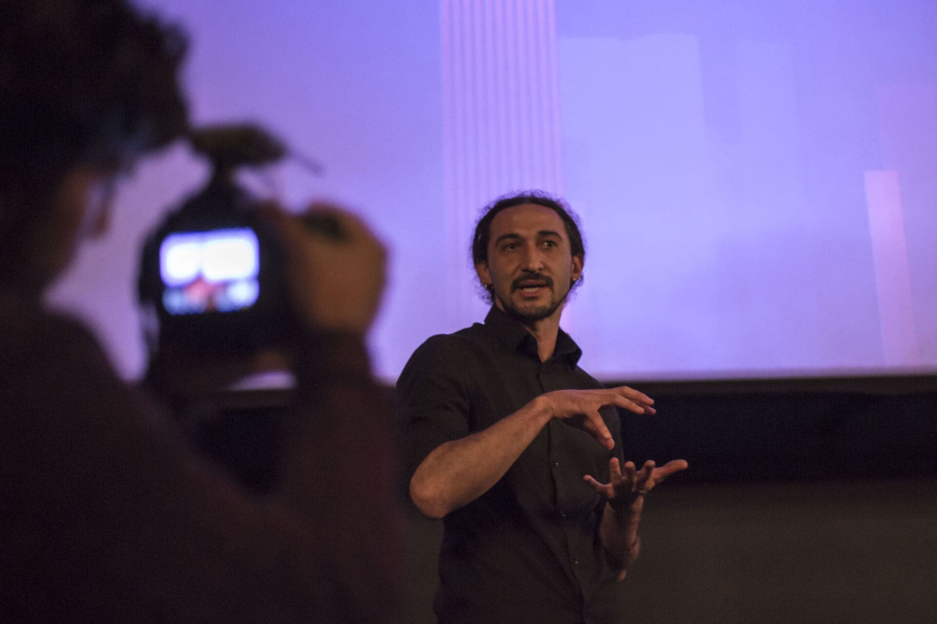 Salym Fayad presentando una proyeccioón de la MUICA en el Cine Tonala, en Bogota.Foto: Carlos Santos.