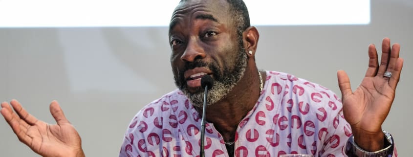 Chiké Frankie Edozien en la presentación de «Lives of Great Men» en el festival Africa Writes 2018 / Foto: Iván González