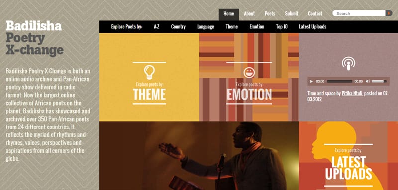 En ocasiones resulta complicado encontrar el equilibrio entre la tradición y los tiempos modernos y entre preservar una manifestación artística y exponerla para genere más cultura. Badilisha X-Change resulta una buena muestra de este equilibrio. La poesía es probablemente el género literario peor tratado por la industria editorial y, al mismo tiempo, quizá sea la manifestación más firmemente ligada a la tradición africana, ya que muchas de esas obras históricas transmitidas oralmente tenían, originalmente, forma y fondo de poesía. Esta plataforma afincada en Sudáfrica ha conseguido catapultar a la poesía africana al siglo XXI, directamente, si es que no lo estaba ya. La iniciativa alberga las poesías en formato de audio y no sólo es accesible desde cualquier lugar del mundo a través de internet, sino que además está adaptado a los teléfonos móviles. En resumen, Badilisha X-Change es el canal para que los africanos tengan poesía africana en sus teléfonos móviles.