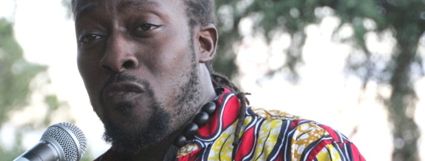 El escritor ghanés Parkes en una muestra de su poesía. Foto: Carlos Bajo / Wiriko.