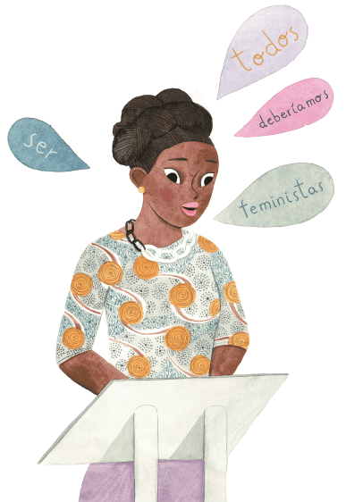De nuevo, en este formato poco convencional, el discurso de la novelista nigeriana nos llega, no solo destinado a los y las más pequeñas, sino también a los y las mayores que seguramente acompañarán su lectura, de una manera simple y directa:
