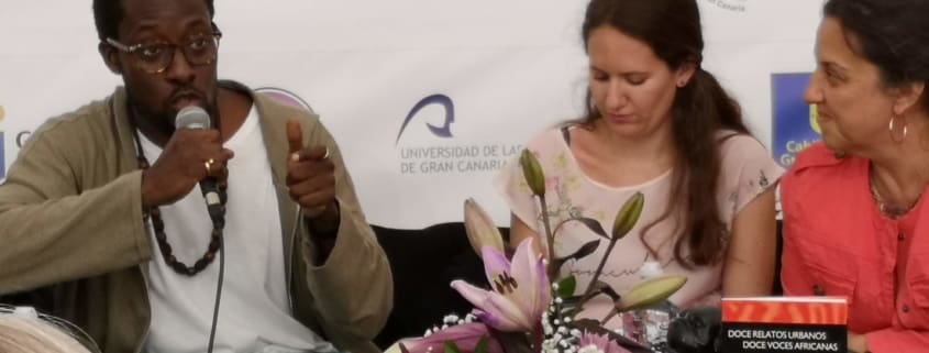 A la izquierda el ghanés Nii Ayikwei Parkes, uno de los autores de la colección y, a la derecha, Ángeles Jurado, editora del volumen. Foto: Ana Henríquez Pérez