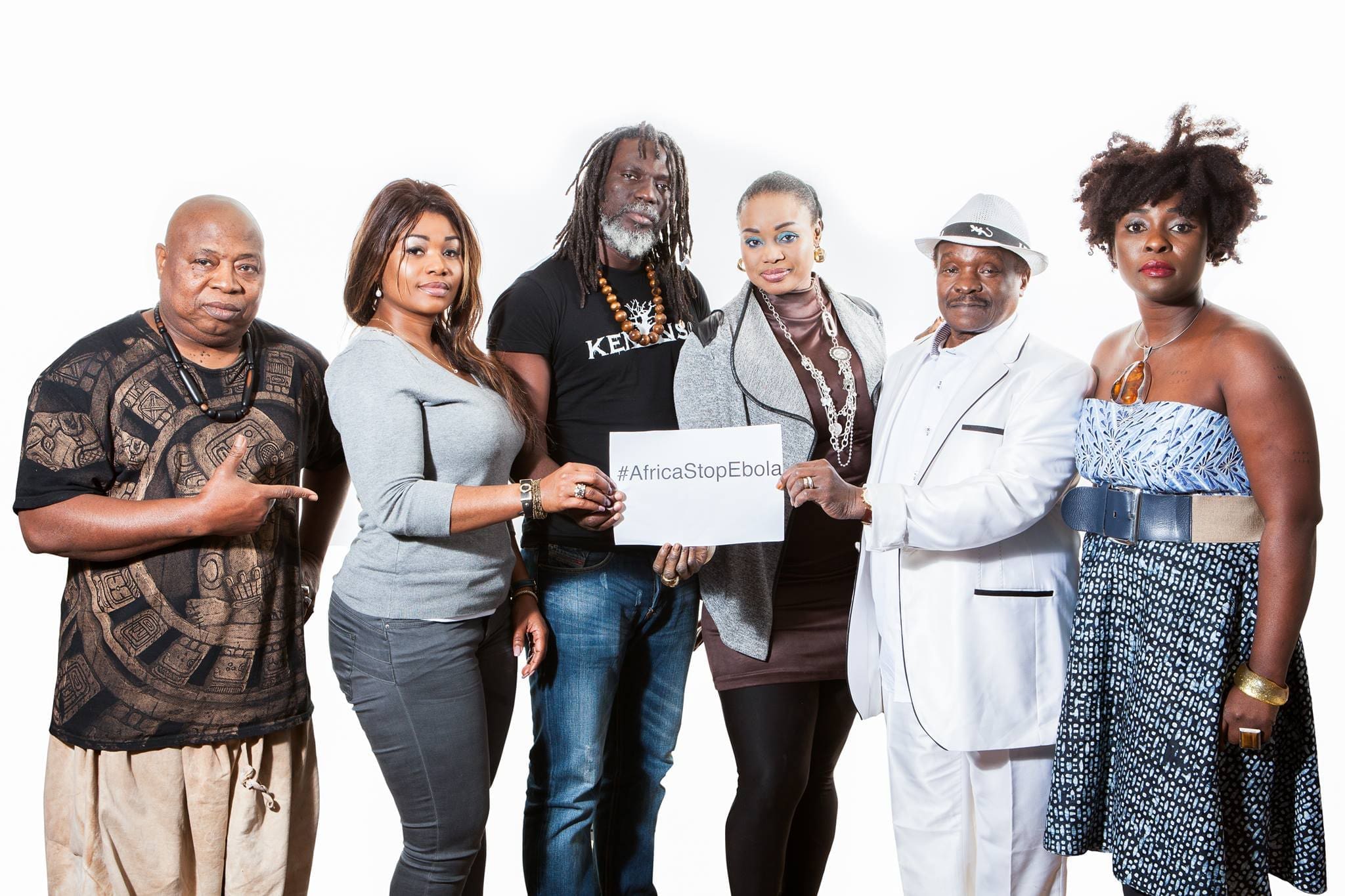 Los artistas africanos de Africa Stop Ebola: Barbara Kanam, Tiken Jah Fakoly, Oumou Sangare, Mory Kante y Sia Tolno.