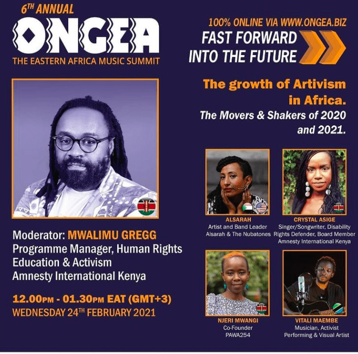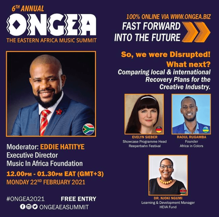 Con el objetivo de brindar esperanzas y estructuras a los artistas y profesionales de la industria cuyos medios de vida se han visto afectados por el cierre de COVID-19, Ongea! 2021 arranca con el lema «Fast Forward Into the Future», algo así como «Avanzando Rápido hacia el Futuro», y abordará varios retos de la indústria musical del África Oriental con voces de muchísimo peso en la región.