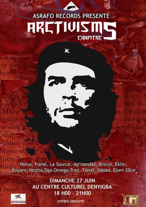 Elom 20ce es un conocido rapero togolés, conocido entre otras cosas por su lírica combativa y crítica, por su indudable posicionamiento panafricanista y porque no tiene pelos en la lengua. Él es uno de los impulsores de Asrafo Records. Las propuestas lanzadas desde el sello son tan incisivas como los versos de los artistas que se acercan a la iniciativa. El objetivo del sello parece sencillo (que no es lo mismo que modesto): “El objetivo original era producir discos de calidad que despertasen las consciencias”. Esa es la respuesta que ofrecen en una conversación a través de una red social. La emancipación, el compromiso, la cultura como arma de transformación y, sobre todo, la unión de África y los africanos, son algunos de los pilares del sello. Por eso, la producción musical, no era suficiente.