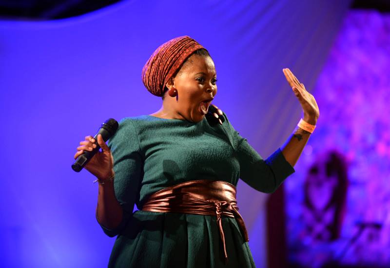 Buhlebendalo Mda , cantante del grupo vocal sudafricano The Soil. Foto de Bram Lammers/MTN Bushfire Festival.