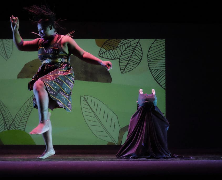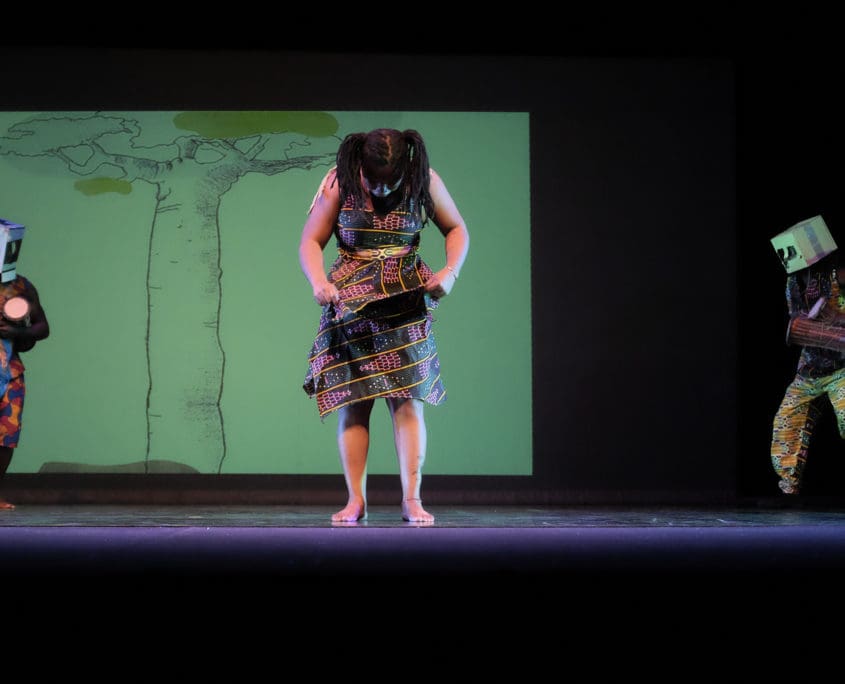 En la obra se utilizan la música y la danza de Costa de Marfil, así como de la percusión corporal interactiva y otros elementos visuales para introducir a los espectadores en la cultura africana ¿Cómo se consigue amalgamar todo esto para que llegue a los niños?