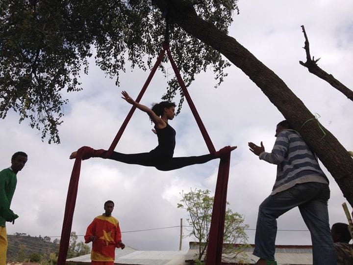 Originario de la ciudad de Debere Berhan, situada en el centro de Etiopía, este colectivo de acróbatas nació en 1998. “La idea embrionaria fue de Netsanet Assfa, quien fundó este circo para todos. Empezamos trabajando con la escuela de la aldea de Atsa Zeriyakob, una escuela especial para niños con diversidad funcional como la ceguera, la sordera y otros problemas físicos”, nos cuenta su actual director ejecutivo y artístico, Teklu Ashagir. “Con ellos, hacíamos circo adaptado a sus problemas. Por ejemplo, si alguno tenía dificultad en una pierna, potenciábamos lo que podía hacer con su mano”.