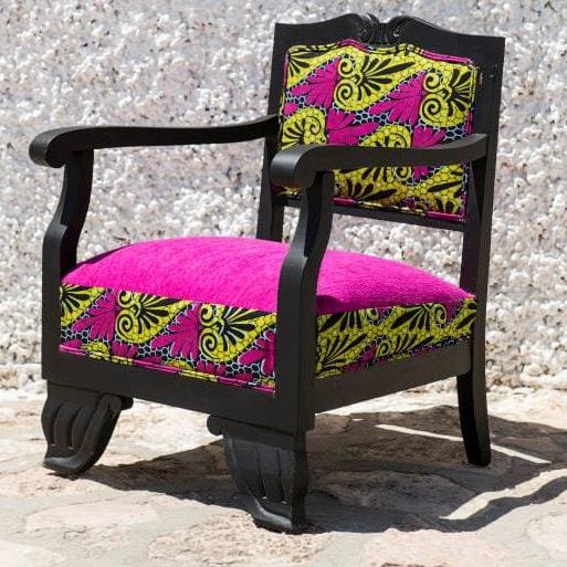 Un mueble: ELAS, una empresa social que desde un brindis a las mujeres africanas, recupera piezas de mobiliario antiguas y las restaura con mucho mimo a partir de telas africanas, es lo más en decoración. Creada por la periodista Lucía Mbomío y la química Berta Okenve con la intención de fusionar la tradición europea con la cultura africana más contemporánea, estas dos españolas de ascendencia ecuatoguineana, crean delicadas piezas de salón que serán la envidia de cualquier amante de las telas wax. Para los clientes más exigentes con sus hogares, esto será un regalo (o auto-regalo) magnífico e insuperable. Podéis pedir presupuestos y hacer pedidos a través de su página de Facebook o Twitter, o ver algunas de sus Dulcineas (nombre de su primera colección) en la tienda Enfant Terrible, ubicada en el número 30 de la calle Núñez de Balboa, en Madrid.