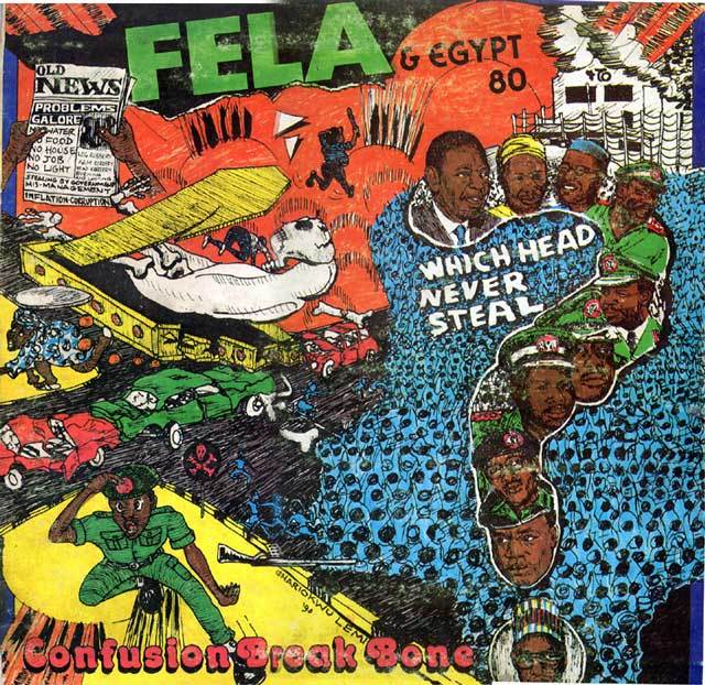 Son numerosos los ejemplos del “diálogo” que se estableció entre los abusos del poder y el rebelde ritmo Afrobeat, que a menudo utiliza el humor para burlarse o caricaturizar a las clases dirigentes y al ejército (como por ejemplo, sucede en Expensive Shit). Fela se convirtió en uno de los objetivos principales del dictador Olusegun Obasanjo, lo que lejos de acallar su crítica la hizo más feroz y aguda. En un tema de 1976, ridiculiza a los soldados comparándolos con zombies, ya que según él, sólo sabían acatar órdenes debido a su carencia de criterio y personalidad. Como respuesta, el ejército nigeriano acude de nuevo a la violencia, con el fin de silenciar a los habitantes de Kalakuta, lo que demuestra una vez más, el poder de la música. En esta ocasión, la dureza de la agresión fue desmesurada, tras violar a las mujeres y golpear sin excepción, incluso a la madre de Fela, causándole graves daños que le llevarán a la muerte, Kalakuta es quemada y con ella los instrumentos y todas sus pertenencias. El contraataque sonoro se lleva a cabo a través de varios temas, Unknown Soldier (1979) hace referencia al informe oficial que responsabilizaba de los hechos a “soldados no identificados”. A la muerte de Funmilayo Ransome-Kuti, Africa’70 compone Coffin For Head Of State donde se culpabiliza directamente a Obasanjo de su muerte.