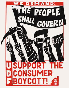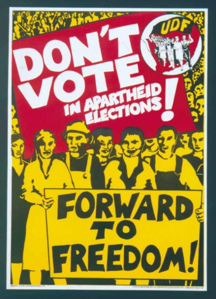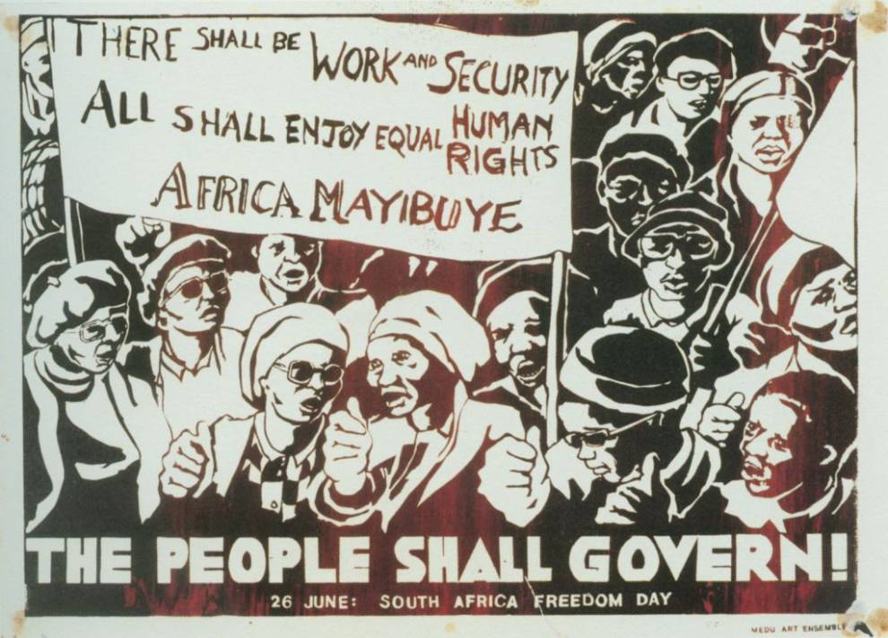 Este movimiento de cultura gráfica, fue acompasando y plasmando los acontecimientos que tenían lugar en un escenario social y político muy agitado. El auge del Black Consciousness Movement recordó el poder de la cultura en la lucha de la gente; los sindicatos, movimientos sociales, partidos políticos y organizaciones (como el COSATU, African National Congress , Comunist Party y The United Democratic Front) utilizaban los carteles para difundir ideas, protestar, anunciar eventos, exigir la liberación de los presos políticos y recordar a aquellos y aquellas que habían sido asesinados durante la lucha. La gráfica de los carteles era también una herramienta básica de la lucha obrera y estudiantil, así como el crecimiento de la prensa comunitaria que daba información sobre la resistencia, ni siquiera mencionada en la prensa comercial. Las matanzas de Sharpeville (1960) y de Soweto (1976), así como el establecimiento del Estado de Emergencia de los años ochenta, quedaron impresos en los numerosos posters.