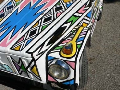 Una sola imagen es suficiente saber para saber a qué nos referimos cuando hablamos del arte Ndebele y para dar muestra de la popularidad de unos patrones que cada vez son más conocidos en Occidente. Y con esta imagen, no nos referimos únicamente a los murales pintados de los propios pueblos Ndebeles que podemos visitar cuando viajamos al norte de Sudáfrica. Nos referimos a las pasarelas de moda, a los escaparates primavera-verano 2014, decoración de interiores, a los coches y a exposiciones y galerías de arte en varios puntos de planeta. El llamado “estilo étnico” bebe principalmente del arte Ndebele, aunque no lo sepamos. Lo hemos visto, lo conocemos y hasta lo vestimos, pero ¿cuál es su historia?