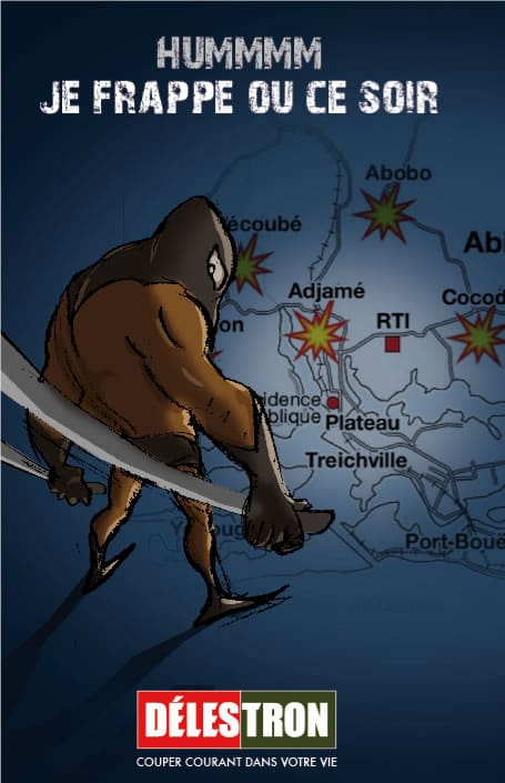 Quizá debamos empezar por el principio. ¿Quién es Délestron? Es un nuevo personaje de comic marfileño. Todo en estas historietas remite al género de los superhéroes, desde la estética hasta las aventuras, incluido un antifaz y un traje ajustado. ¿Qué hace Délestron? Esa es una de sus particularidades… los superhéroes luchan habitualmente contra el mal, quizá contra alguno de esos malvados enigmáticos. Délestron, sin embargo, se dedica a cortar el fluido eléctrico. Así es, su lema es simplemente “couper courant dans votre vie” (cortar la corriente en vuestra vida). De este modo, desde el mes de marzo, momento en el que empezó a actuar, Délestron es el responsable de los cortes de corriente en Costa de Marfil.