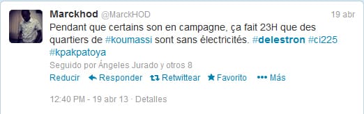 Igualmente, Délestron ha trascendido incluso la tinta (los bits, más bien, porque sólo se difunde por internet) para convertirse en un sujeto mucho más adaptable. Por ejemplo, en Twitter, se ha convertido en el hashtag (la etiqueta) que los marfileños utilizan para transmitir sus cuitas en relación con los cortes de corriente.
