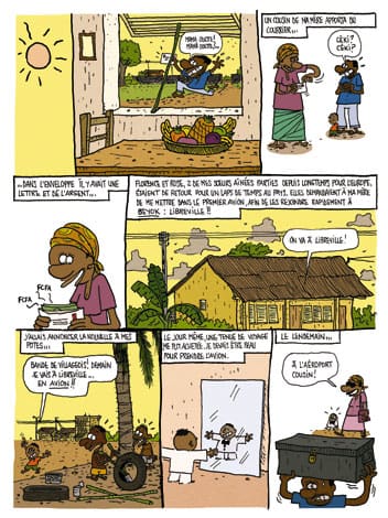 El de Pahé es un caso paradigmático de dibujante con una clarísima voluntad por contar historias e historias con trasfondo. Su propia trayectoria demuestra esta voluntad narrativa ya que empezó como caricaturista de medios de comunicación gaboneses, pero pronto se pasó a la disciplina del cómic en la que además de dibujar podía explicar cosas y además cosas que conocía perfectamente, ya que Pahé es el padre de “La vie de Pahé” su obra más conocida, pero también es su protagonista.
