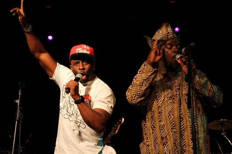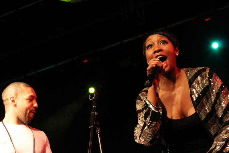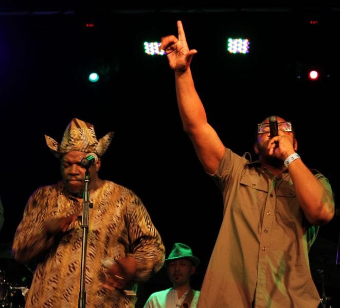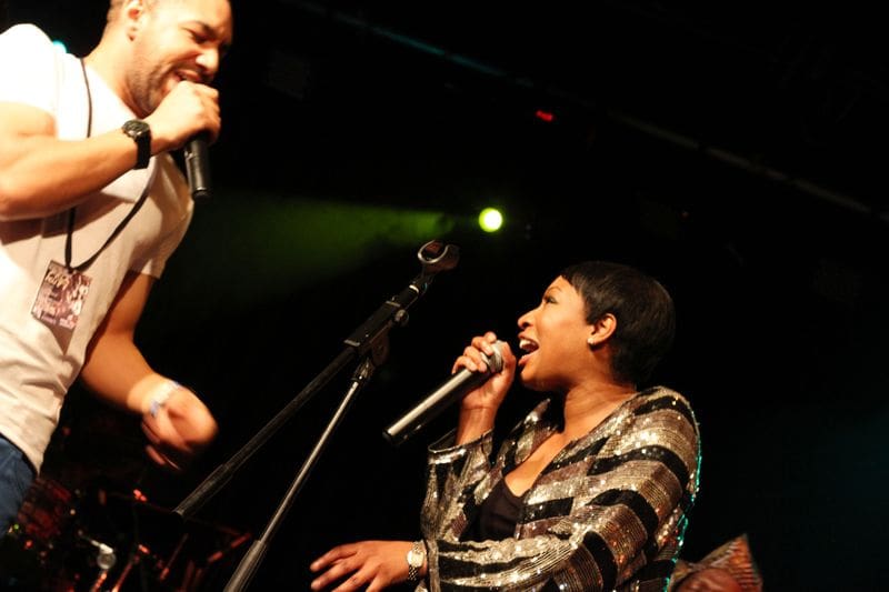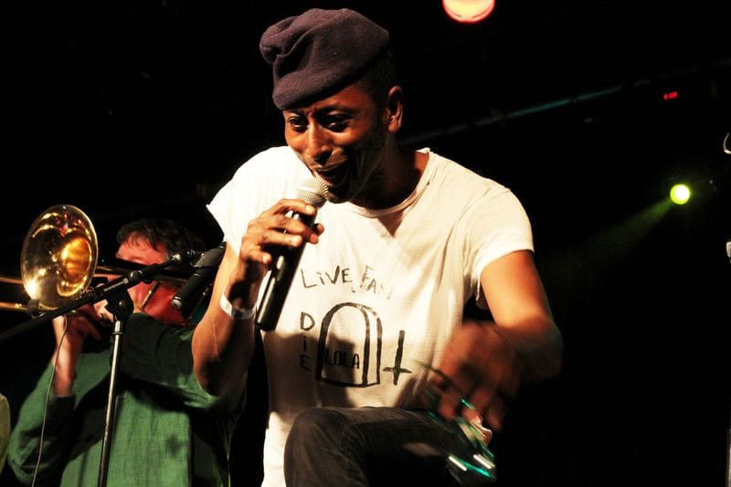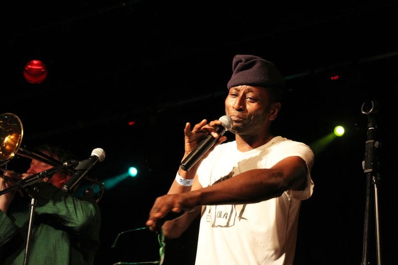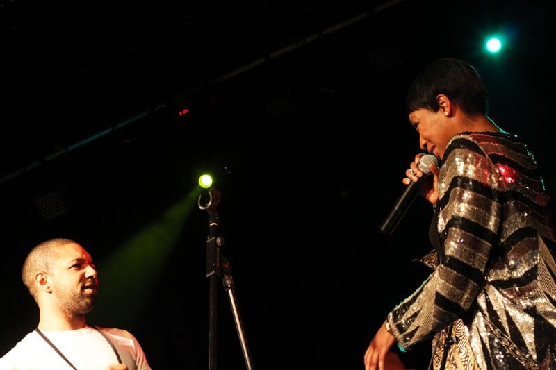 Esta estructura dialógica, en el que existe siempre una voz que da lugar a una respuesta por parte del coro, vuelve a repetirse con la pareja de jóvenes artistas Terri Walker y KOF. Dele se coloca en el teclado, como en los orígenes de los tiempos de Fela –pues los tiempos de Fela, tal como este evento mostró, continúan hoy-. Los saxofones nos anuncian que ha llegado el gran clásico “Water no enemy”, en el que el rey del afro-beat usa el agua como metáfora del propio fluir de la sociedad, resaltando las interacciones armoniosas, con el que necesitaba también fluir el gobierno, para que los resultados no fueran, como hasta ahora, desastrosos. Y cual corriente agitada por el movimiento de la naturaleza, se ve irrumpida por esta pareja. La voz de Terri muestra la influencia de la cultura teatral Yoruba, clave para entender el lenguaje musical de Fela, satírico y burlesco. Terri no se limita a cantar “sus partes”. Sus movimientos faciales no pierden la expresividad mientras que KOF da la réplica, y sólo gracias a ese diálogo, la música sigue viva. Continúa. Tal vez por eso, otro de los “motes” que tampoco disgustaban al Presidente Negro era el de el campeón de las gentes, pues sin el público, la música de Fela sería impensable.