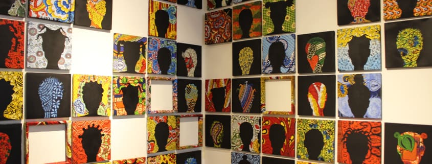 Harto conocidas son las máscaras africanas, en las que tanto se inspiró Picasso y las cuales han sido asociadas a rituales que, por no ser compartidos formalmente, también han sido calificados como primitivos. Pero ¿son estas máscaras realmente representativas de la escena cultural que se cuece en el continente? 1:54 va más allá de esas máscaras, para desmitificarlas y mostrar trabajos de lo más variopintos. Si de establecer denominadores comunes se trata, 1:54 exhibió trabajos muy comprometidos con las distintas realidades de los diferentes países, como las dos paredes con siluetas de distintas trenzas de colores de niñas, de la artista nigeriana Peju Alatise, en su campaña por las niñas secuestradas “Niñas, no novias”. También destacó el arte sostenible, con esculturas de materiales reutilizados, como el “vagabundo hambrieto” del nigeriano-americano Adejoke Tugbiyele, o las máscara hechas con bidones y cepillos, del beninés Romual Hazoumé. Aunque tal vez la más espectacular fuera la sencilla composición del “refugiado mapamundi” del Zimbabwense Dan Halter, hecho a base de las típicas bolsas de almacenamiento y transporte. Gran protagonismo tuvieron también las imágenes de estudio que reflexionaban sobre el lugar del cuerpo en los distintos espacios, entre los cuales no pudieron faltar las imágenes del fotógrafo senegalés Omar Victor Diop o el burkinabé Hamidou Maiga.