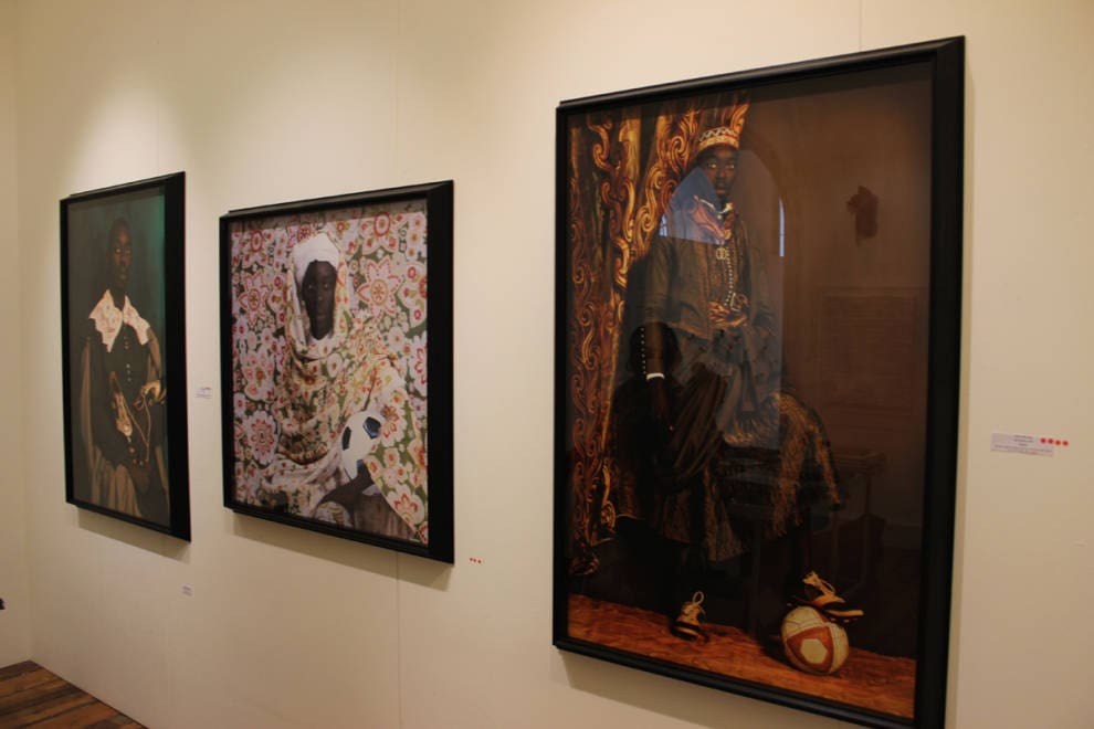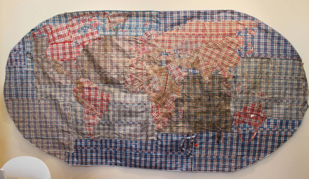 Harto conocidas son las máscaras africanas, en las que tanto se inspiró Picasso y las cuales han sido asociadas a rituales que, por no ser compartidos formalmente, también han sido calificados como primitivos. Pero ¿son estas máscaras realmente representativas de la escena cultural que se cuece en el continente? 1:54 va más allá de esas máscaras, para desmitificarlas y mostrar trabajos de lo más variopintos. Si de establecer denominadores comunes se trata, 1:54 exhibió trabajos muy comprometidos con las distintas realidades de los diferentes países, como las dos paredes con siluetas de distintas trenzas de colores de niñas, de la artista nigeriana Peju Alatise, en su campaña por las niñas secuestradas “Niñas, no novias”. También destacó el arte sostenible, con esculturas de materiales reutilizados, como el “vagabundo hambrieto” del nigeriano-americano Adejoke Tugbiyele, o las máscara hechas con bidones y cepillos, del beninés Romual Hazoumé. Aunque tal vez la más espectacular fuera la sencilla composición del “refugiado mapamundi” del Zimbabwense Dan Halter, hecho a base de las típicas bolsas de almacenamiento y transporte. Gran protagonismo tuvieron también las imágenes de estudio que reflexionaban sobre el lugar del cuerpo en los distintos espacios, entre los cuales no pudieron faltar las imágenes del fotógrafo senegalés Omar Victor Diop o el burkinabé Hamidou Maiga.