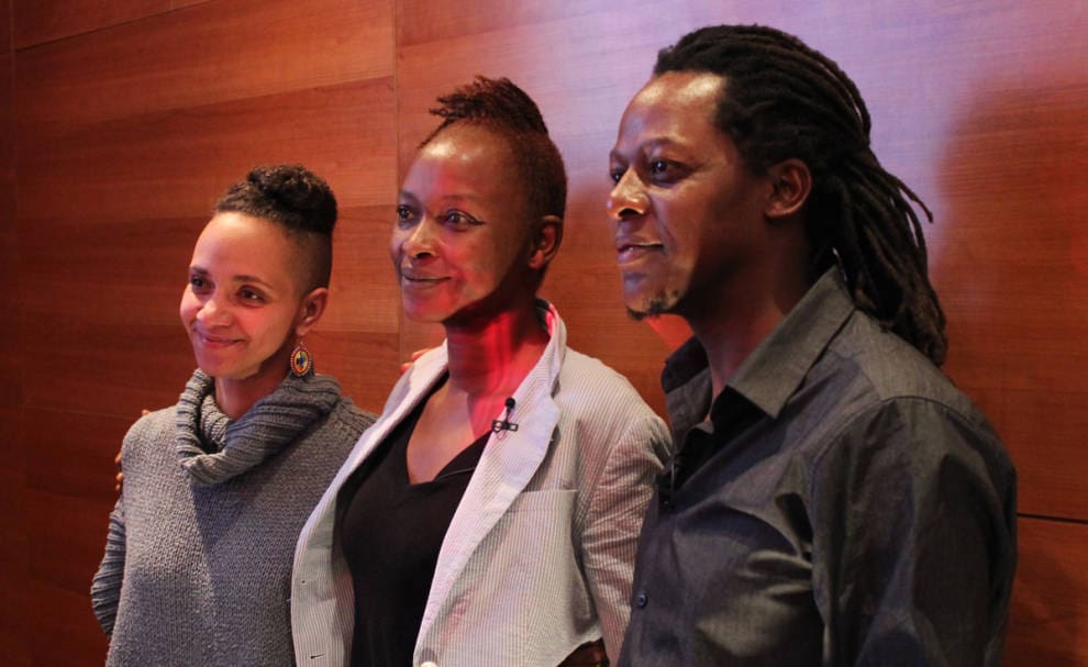 Miriam Syowia Kyambi nació en 1979 en Nairobi (Kenia) y es una artista multimedia que integra tanto a la audiencia, como a sí misma, en tanto que artista, en una obra artística en la que hay mucho lugar para la improvisación. Como partícipe de la esfera cultural keniana, la artista conoció a James Muriuki en una galería con el que acabaría haciendo un trabajo en conjunto. “Empezamos hablando de qué significaba para nosotros el ser artista y acabamos decidiendo hacer algo juntos, aunque nuestras visiones eran muy distintas”. El trabajo del keniano James Muriuki (1977) es más documental sobre el proceso de intento de urbanización que está habiendo en Kenia. “Cuando se habla de desarrollo, – se pregunta James- ¿a qué nos referimos? No puede ser que el desarrollo no sea inclusivo, y eso es lo que pasa con la estética “mal”, de centro comercial, que se está intentando implementar en las tierras alejadas de la capital, por eso yo me centro en el tema de la tierra, y así en la reclamación del arte, como modo de riqueza”. Ambos han unido sus inquietudes para hacer instalaciones en las que los actores tienen que tratar de encontrarse en espacios desconocidos.