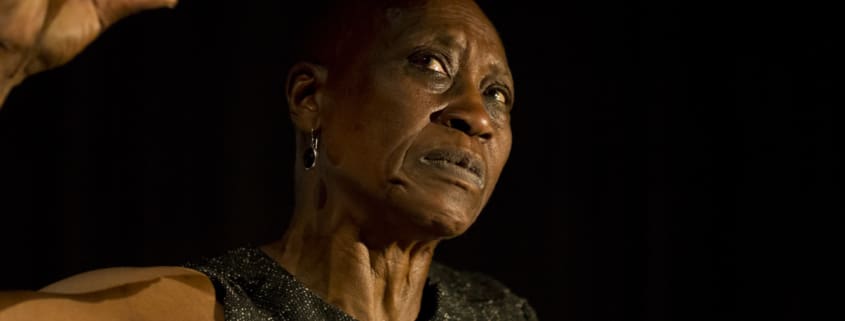 Germaine Acogny durante su primera actuación en el Festival Duo Solo Dance, en Saint-Louis (Senegal), 2 junio 2016. (Fotografía: Estrella Sendra).