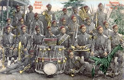 Banda militar de la colonia inglesa en 1900, cuando el conjunto de reinos Akan y Ga aún era llamado por los europeos «Costa del Oro»