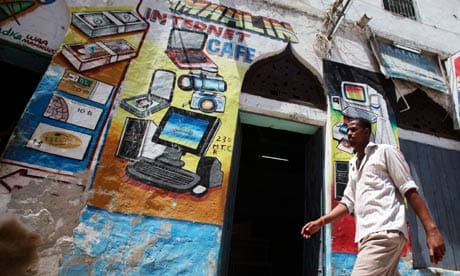 Un hombre camina delante de una nueva tienda de internet, en Mogadiscio. Fuente: Ismail Taxta/Reuters