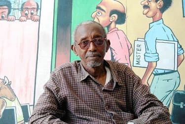 Muhiyidin Sharif Ibrahim ya ha cumplido los 63 y sonríe tímidamente cuando la cámara dispara el clic. Ya no tiene miedo de mostrar su rostro y orgulloso de su trabajo, exhibe sus tapices por las calles de la ciudad. Durante los primeros años del gobierno socialista de Mohamed Siad Barre, Ibrahim se había dedicado a pintar caricaturas del presidente, pero hoy, después de años de silencio gráfico, sus cuadros son optimistas retratos de una Mogadiscio ideal, pacificada y libre. Los camellos, siempre presentes en la iconografía somalí tradicional, así como la indumentaria aborigen de las mujeres, ya no hacen temblar el pulso de su pintura. Es un modelo a seguir, y la viva representación de una tradición que no ha muerto con la guerra, sino que puja para sobrevivir y permanecer.